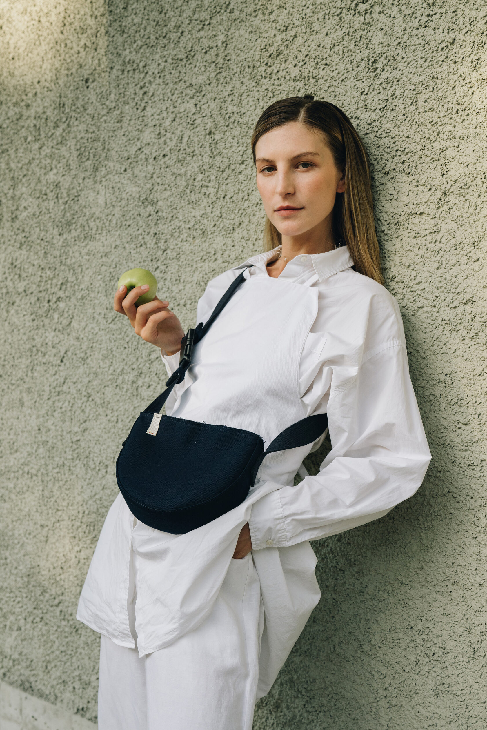 Bag with one compartment and a patch pocket inside. Belt length is adjustable